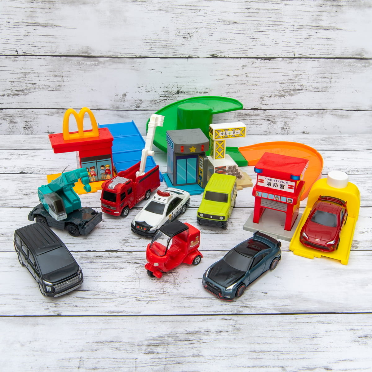 毎年大人気のハッピーセット「トミカ」が、初めて車と建物や道路の付属アイテムのセットで登場します。