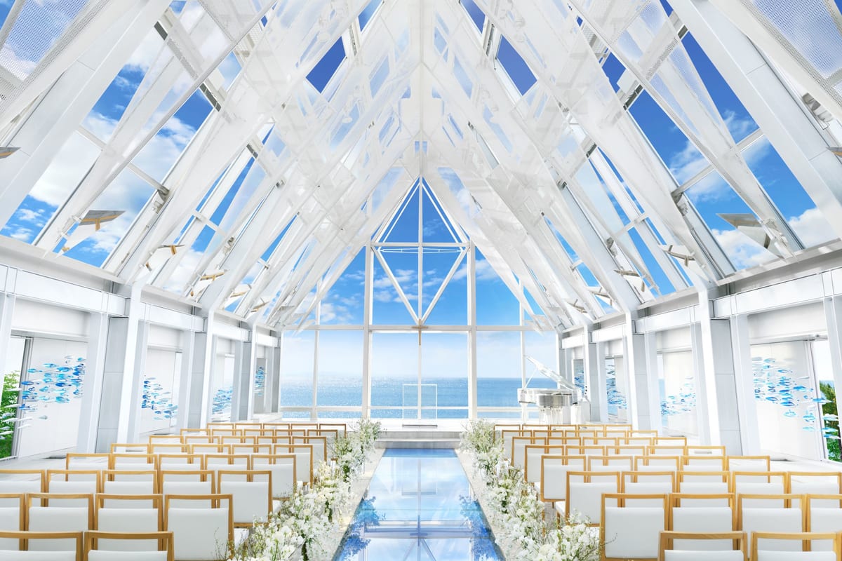 海外リゾートのような、開放感あふれる海のチャペル「クリスタルチャペル」と、