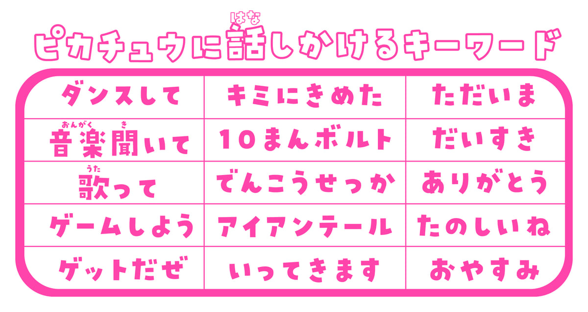 特定のキーワードを話しかけると「ピカチュウ」が応えてくれます。