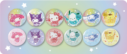 「マイメロディ」「クロミ」「ハローキティ」「ポチャッコ」「シナモロール」「ポムポムプリン」が2種類ずつ、計12種類のデザインがラインナップした缶バッジです。