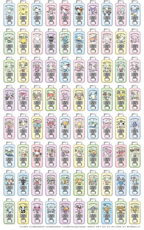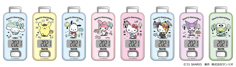 タニタから「2021年サンリオキャラクター大賞」候補の全キャラクターがそれぞれ描き下ろしデザインされた歩数計が登場。