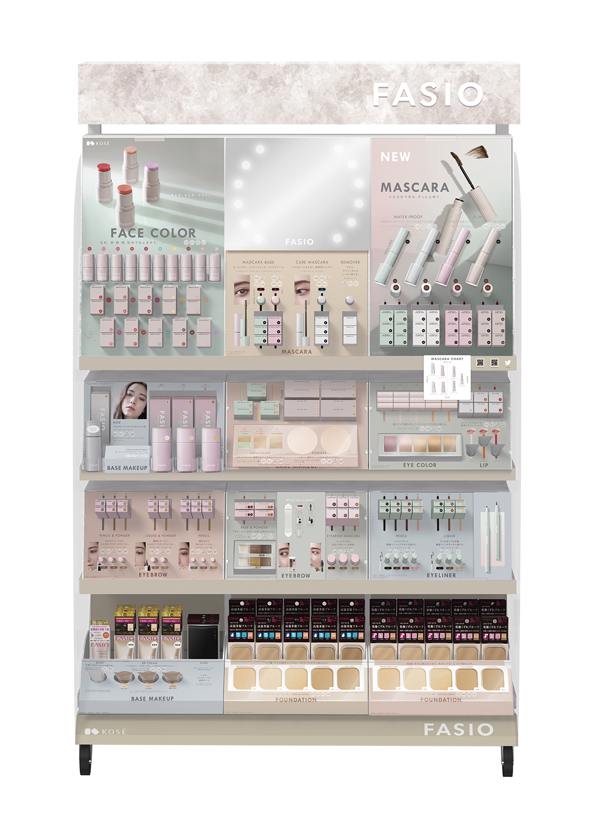 新しい『ファシオ』は、マスカラやマルチフェイススティックをメインに、ベースメイクからポイントメイクまで、全23商品が展開です☆