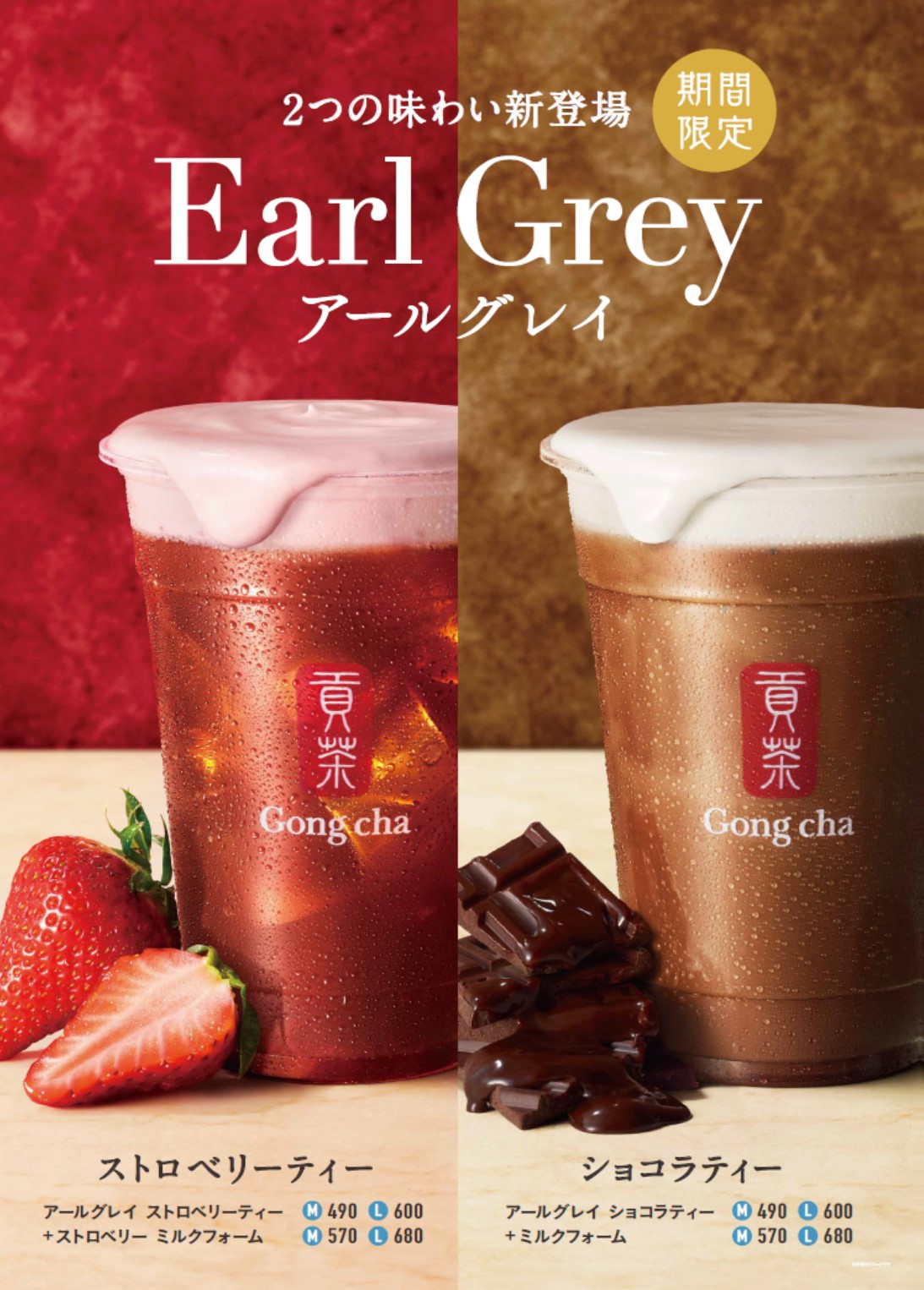 ゴンチャの『アールグレイ ストロベリーティー』と『アールグレイ ショコラティー』は、2021年4月15日(木)より発売です☆