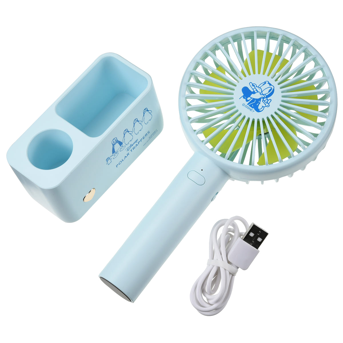 ペンギンに扮したドナルドとペンギンをプリントしたペンスタンドは、左側のスペースにハンディファンを立ててセットできます。