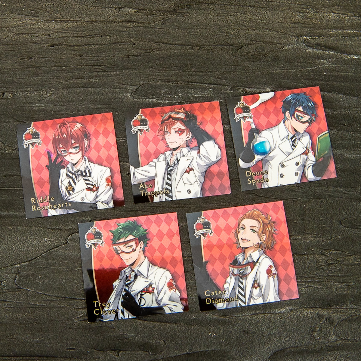 実験着を纏った「ハーツラビュル寮」5寮生のノーマルシール。