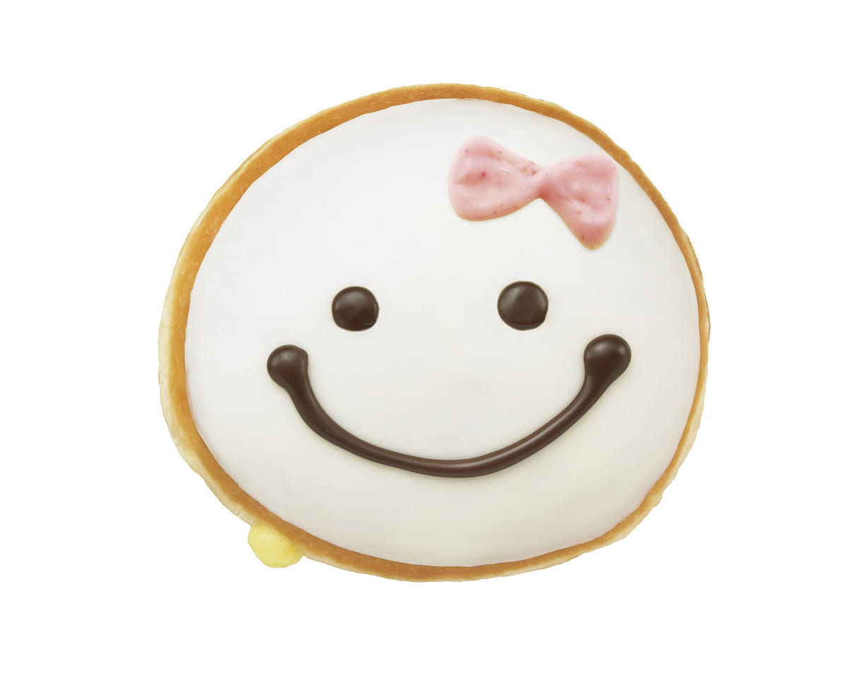 「ママ カスタード」は、ミルキーなホワイトチョコをコーティングしたドーナツに、ビターチョコでスマイルを描いた、ママの笑顔があふれる一品。