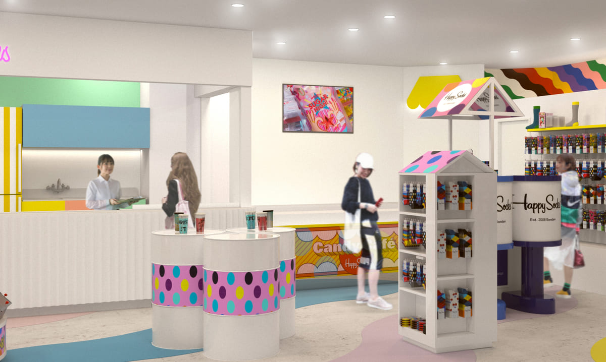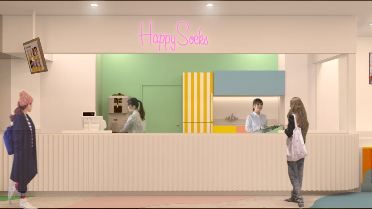 スウェーデン発のポップでカラフルなソックスブランド「Happy Socks(ハッピーソックス)」が、イクスピアリへの出店を機に、キャンディーショップとカフェスタンドを併設した新店舗を開発。