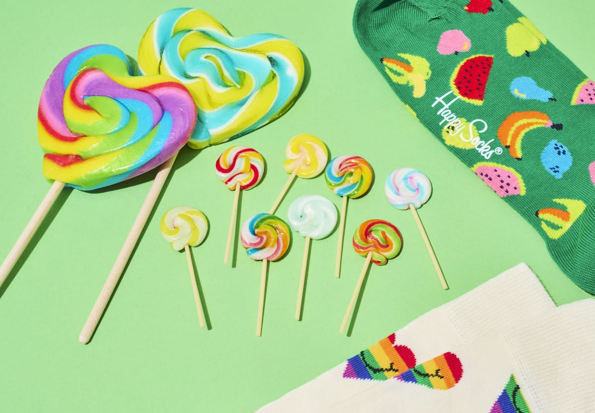 ポップでカラフルな靴下と、色とりどりのキャンディー、自分オリジナルのティー&キャンディーなど、かわいいものを一度に楽しめる「Happy Socks Candy Café」