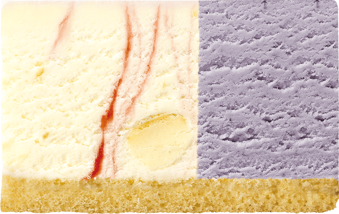 ブルーベリーアイスクリームで、イメージカラーの紫が表現されています。