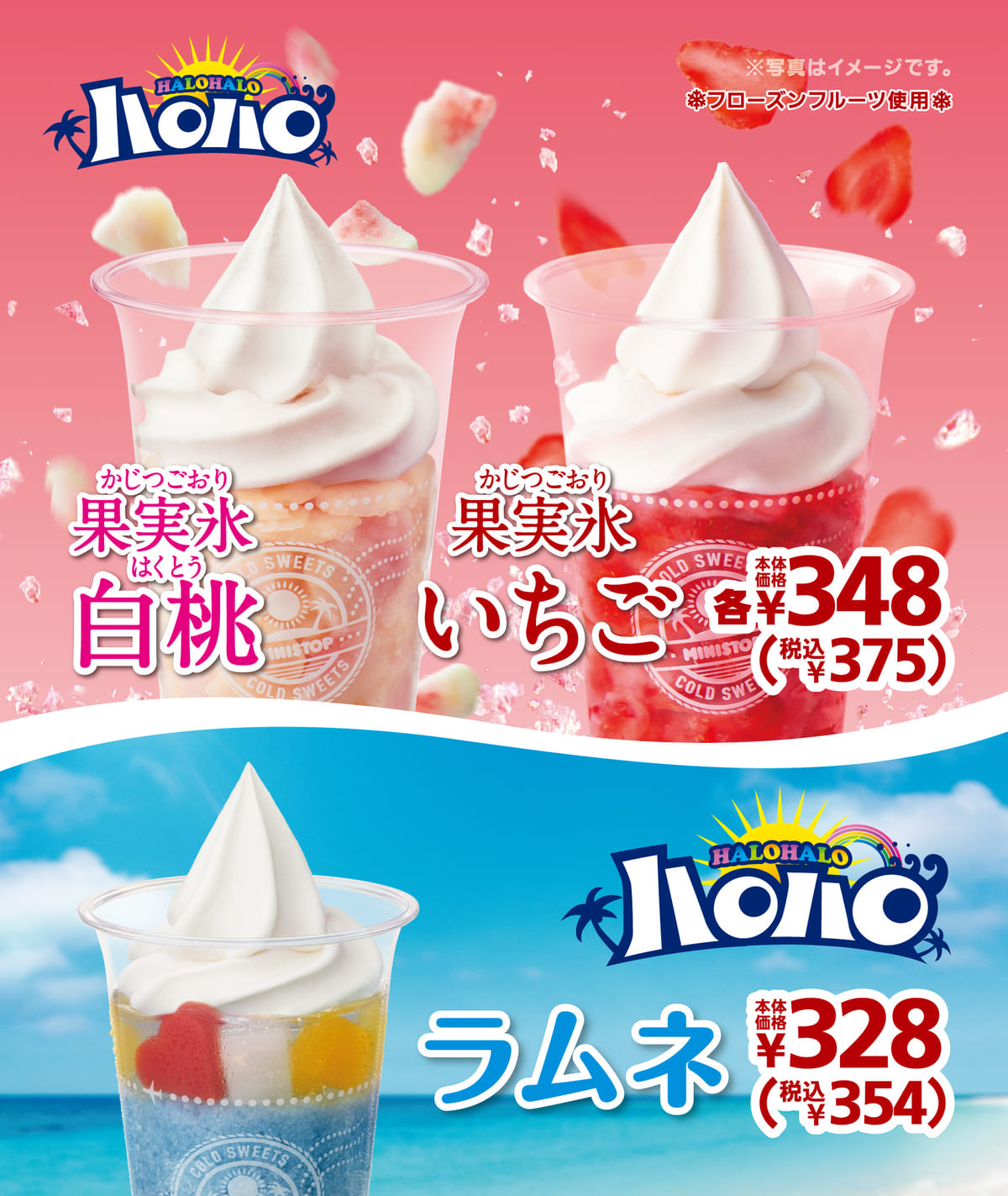 ミニストップの夏の人気商品「ハロハロ」から、2021年第1弾となる”ラムネ、果実氷いちご、果実氷白桃”の3品が発売開始!