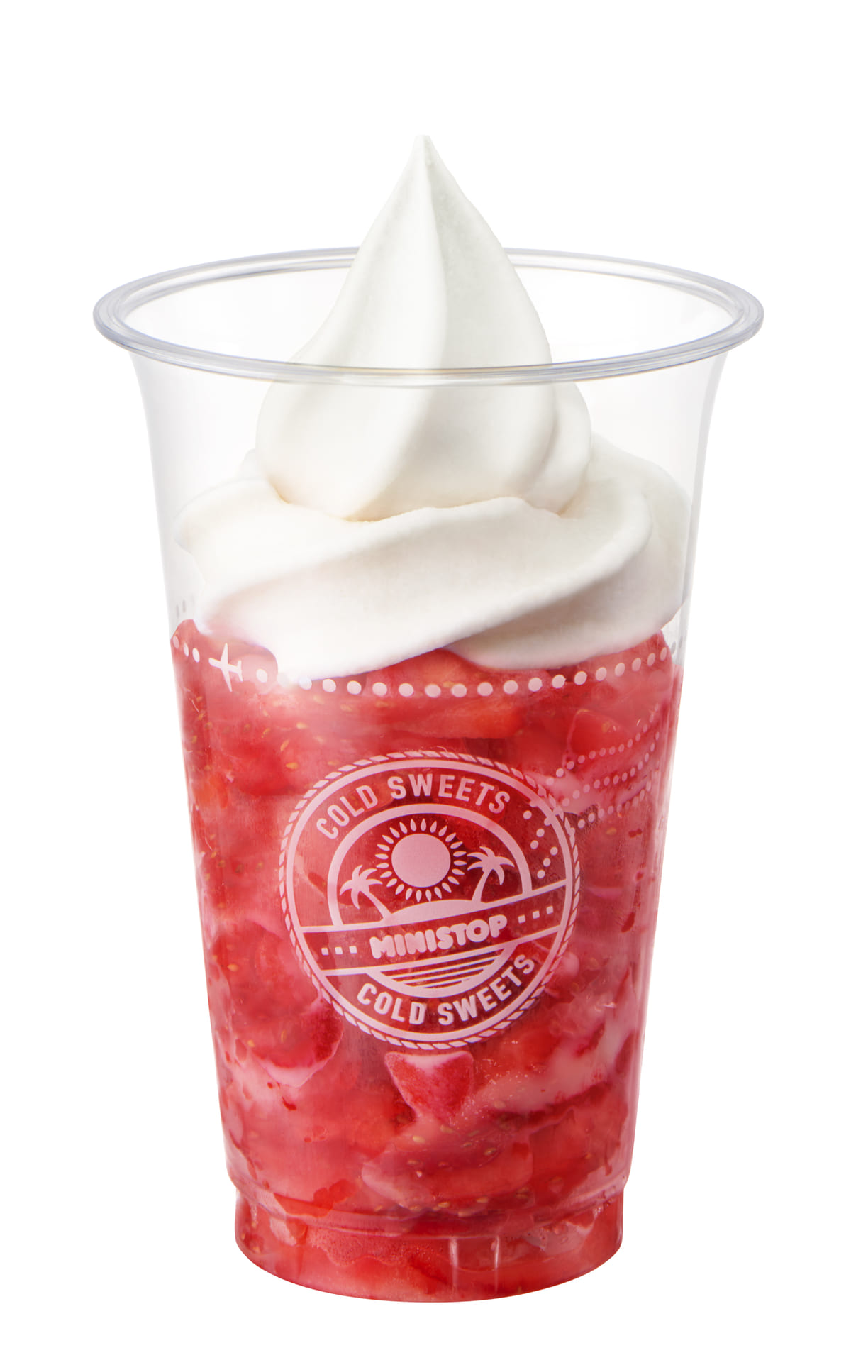 ほどよい酸味のあるいちごに練乳風味のシロップと「ソフトクリーム バニラ」の組み合わせは、相性ピッタリ。
