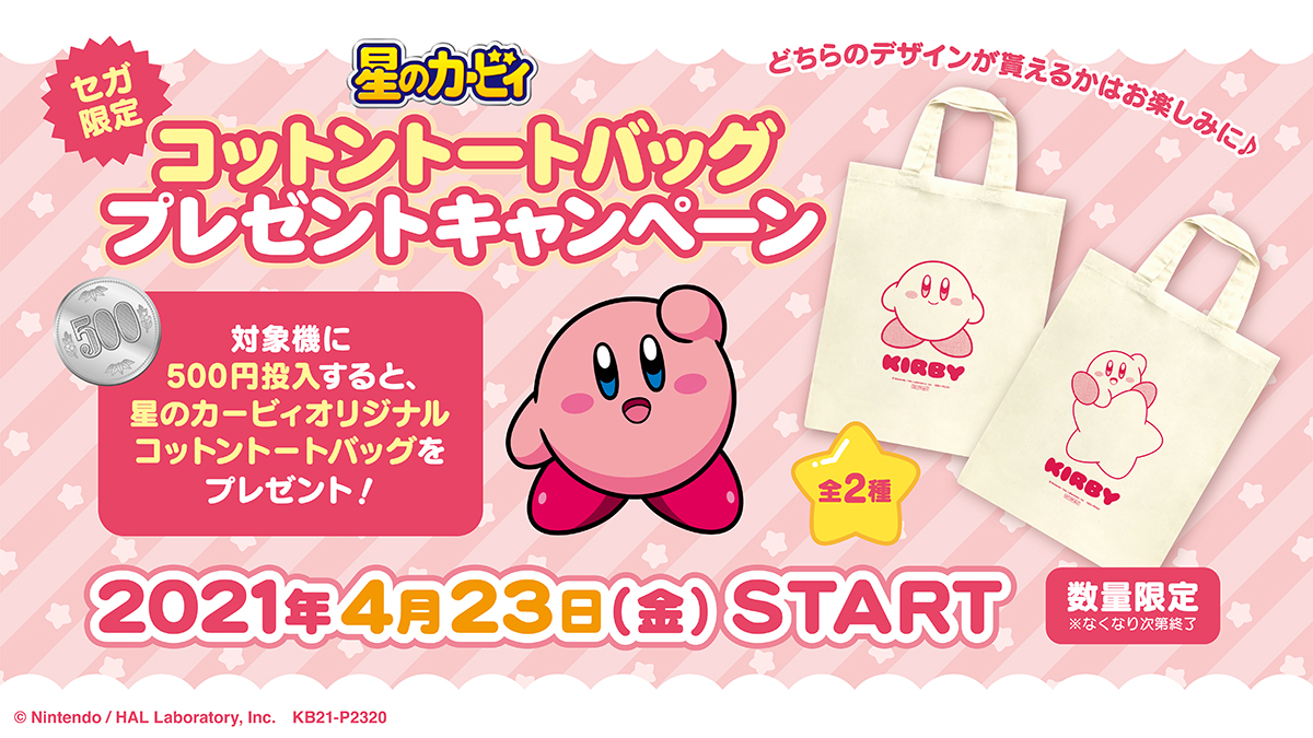 2021年4月23日より「カービィのコットントートバッグプレゼントキャンペーン」が、全国のセガのお店で開催決定。