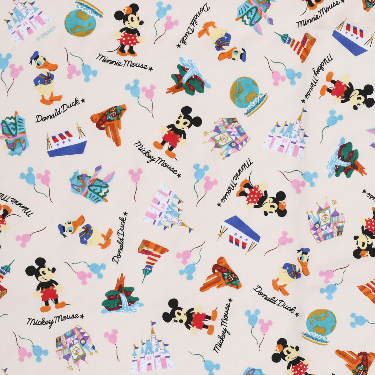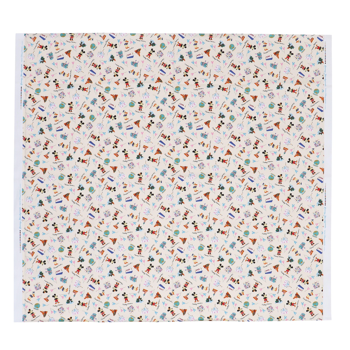 東京ディズニーランドや東京ディズニーシーの名所が描かれたカットクロス。