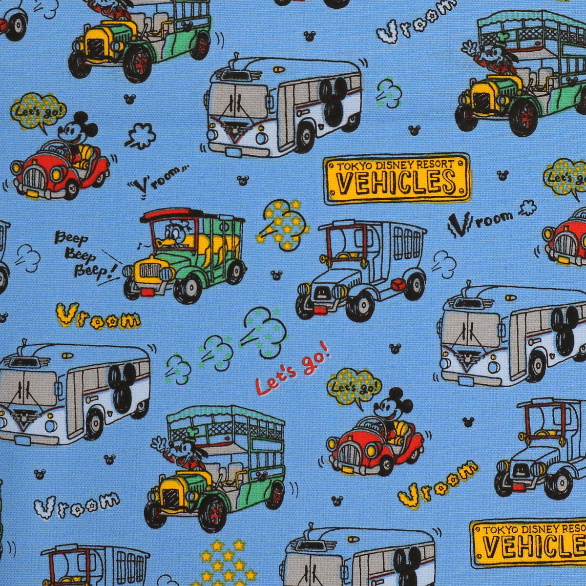 パークで人気の乗り物(ビークル)がデザインされたカットクロス。