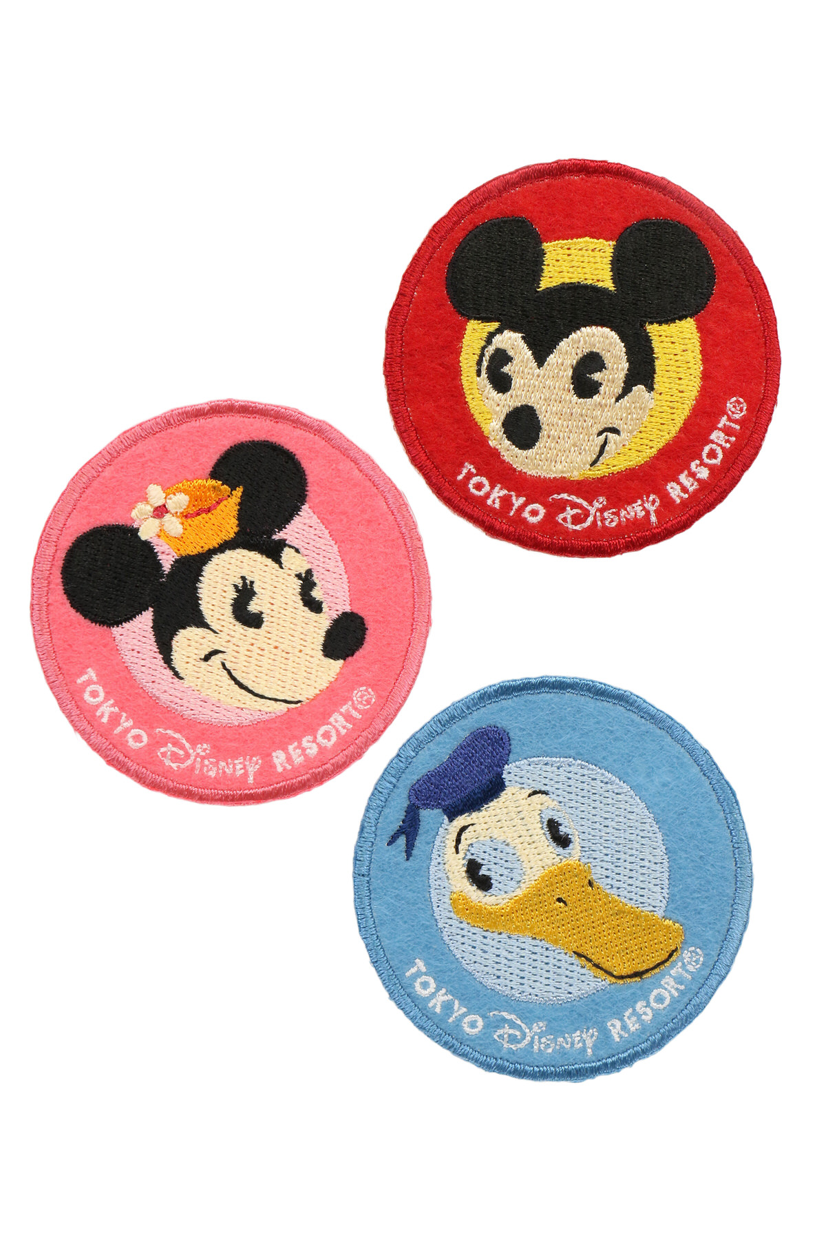 「ミッキーマウス」「ミニーマウス」「ドナルドダック」のワッペン3個セット。