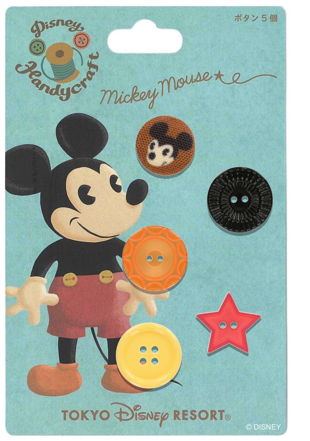 「ミッキーマウス」デザインのホタン5個セット。