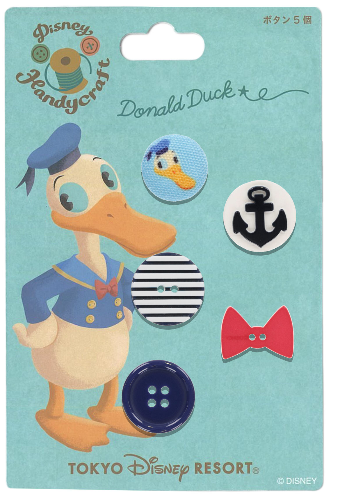 「ドナルドダック」のボタン5個セット。