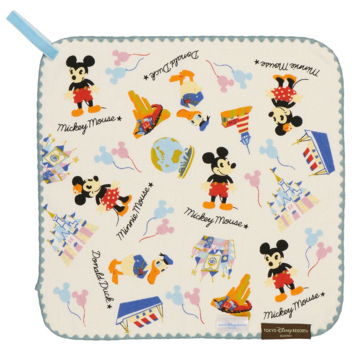 「ミッキーマウス」や「ミニーマウス」「ドナルドダック」やパークの名所が描かれたタオルです。