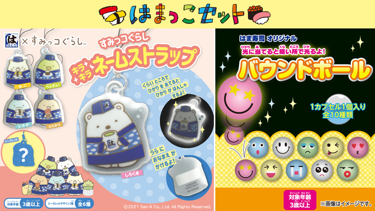 「はま寿司」の店内で注文できる「はまっこセット」のおもちゃに、登場するたび好評の「すみっコぐらし」グッズが限定デザインで登場します。
