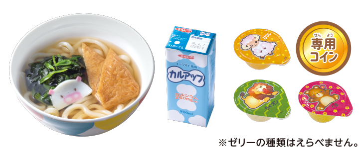 選べるジュースとゼリーがついて、お子さんも大満足なセットです。