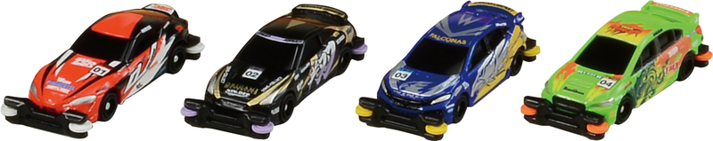 種類:全4種(写真左から「SST-01 TEAM TSR TOYOTA GR SUPRA[PROJECT-α]」「SST-02 TEAM SHINOBI NISSAN GT-R[翔EDITION]」「SST-03 TEAM WING Honda CIVIC TYPE R[concept Eagle]」「SST-04 TEAM MONSTER SUBARU WRX STI[T-REX CUSTOM]」)