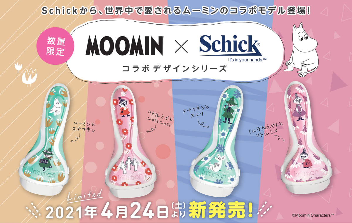 シックの「MOOMIN×Schick」コラボデザインシリーズは、2021年4月24日(土)より数量限定で発売です☆