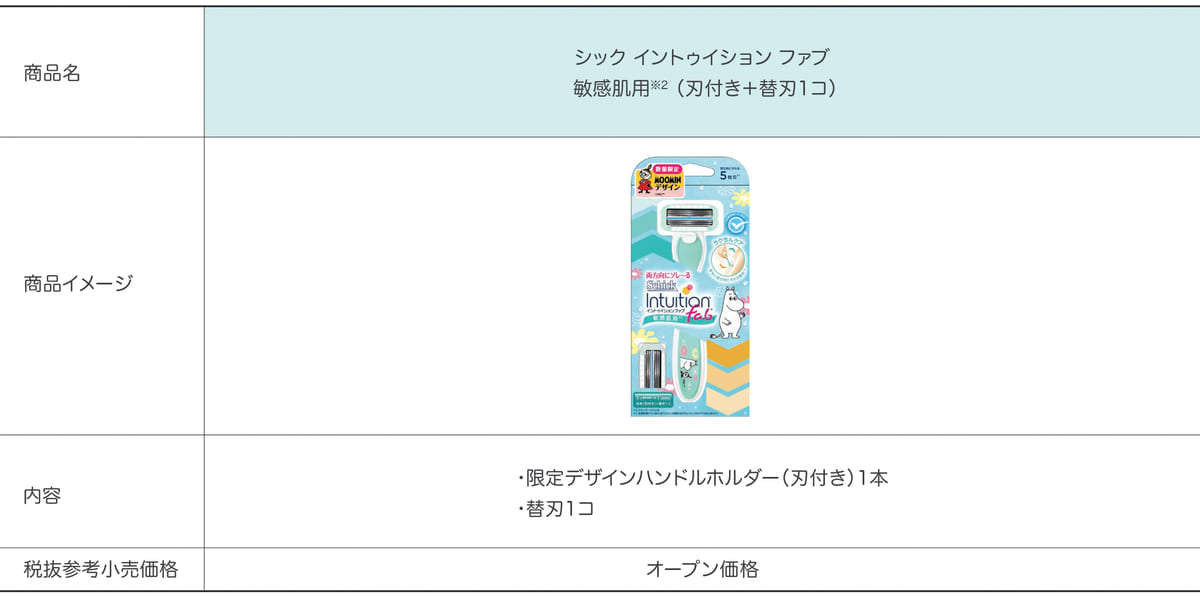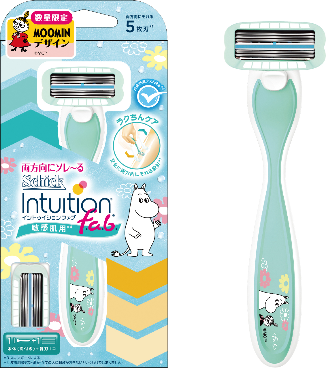 「シック イントゥイション ファブ ホルダー 敏感肌用」のハンドルに、「ムーミン」と「リトルミイ」が描かれたデザインが登場。