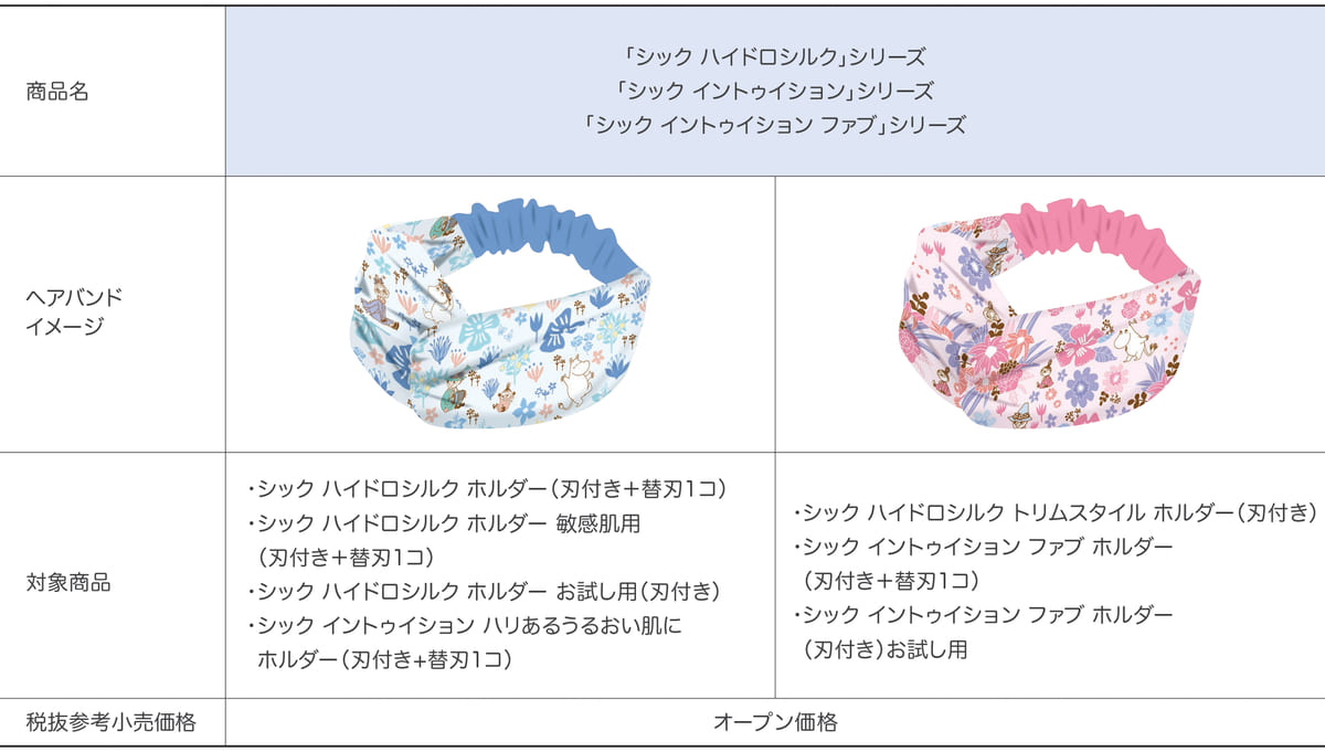シックのシェーバーに、バスタイムや洗顔時に使用できる「ムーミン」デザインのヘアバンドが付いた数量限定セットを発売。