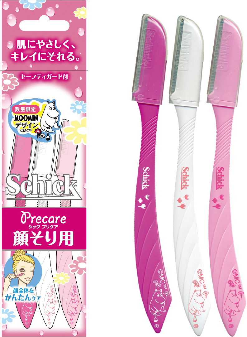 持ちやすく、すべりにくいハンドルを採用することで、簡単に細かいところもきれいに顔そりができるフェイス用カミソリ「シック プリケア Lディスポ フェイス用(3本入)」は、「ムーミン」のイラスト入り。
