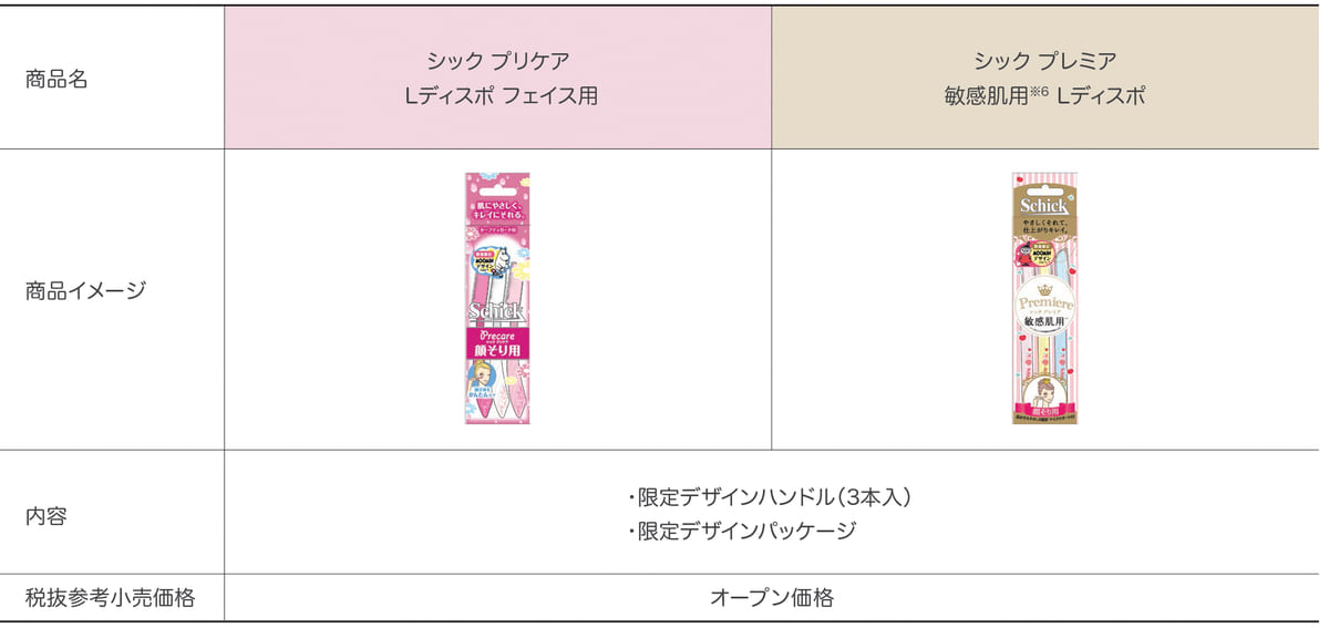 「シック プリケアLディスポ フェイス用」と「シック プレミア 敏感肌用 Lディスポ」のハンドルに、「ムーミン」や「リトルミイ」がデザインされた数量限定商品。