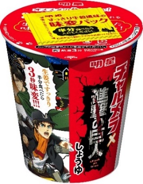 『進撃の巨人』とコラボレーションしたタテ型カップめん「明星 チャルメラカップ 進撃の巨人 コンソメしょうゆ」