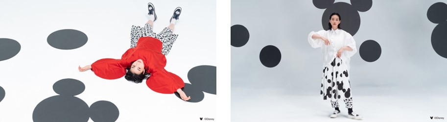 拡げるとミッキーアイコンになるこの商品は、サイズによって選択されない洋服のあり方を見直し、廃棄量の削減を目指しています。