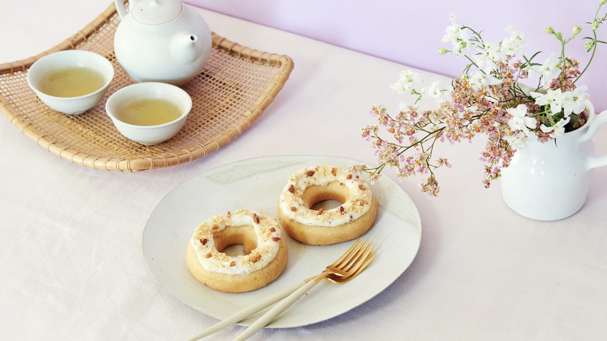 香ばしい玄米パフ入りのクリームやきなこシェイブチョコ、アーモンドなどをトッピングしたリングドーナツが、2021年5月12日(水)より期間限定で販売されます。