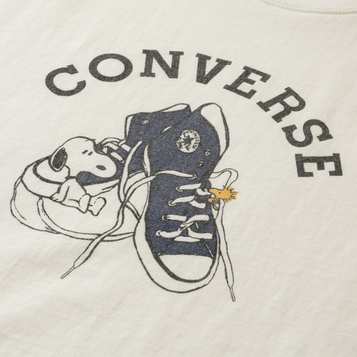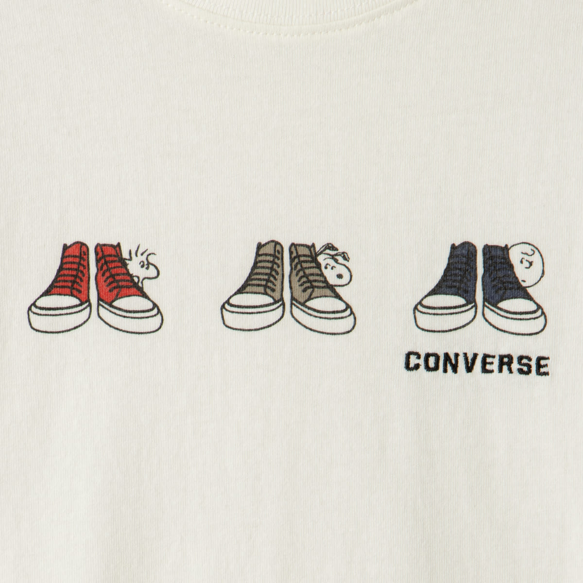 「並び」デザインのピーナッツ×コンバースコラボTシャツ。