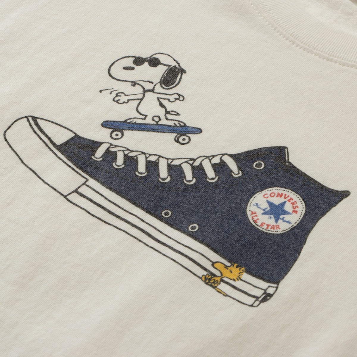「スケボー」デザインのピーナッツ×コンバースコラボTシャツ。