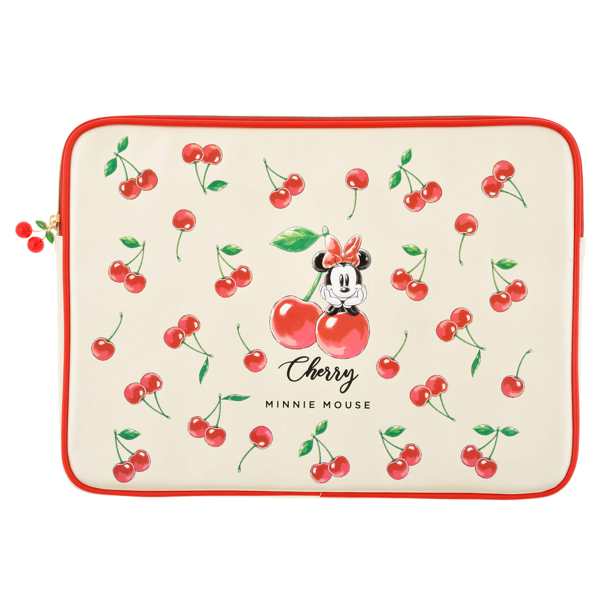 フレッシュなさくらんぼと、キュートな「ミニーマウス」がペンシルタッチで描かれたノートパソコンケース。