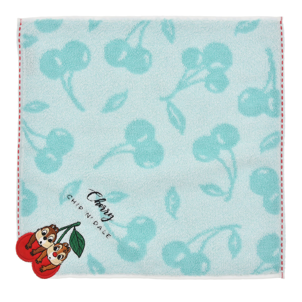 「チップ」と「デール」スカラップデザインになった、爽やかな色合いのさくらんぼ柄タオル。