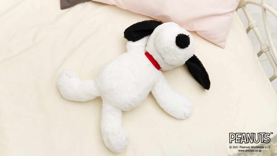 セキグチから発売されている他の「スヌーピー」ぬいぐるみよりも、とてもくたっとしたやわらかなボディが特徴です。