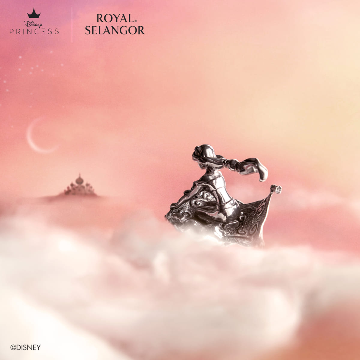 そんな「ジャスミン」をイメージし、魔法のじゅうたんで空を飛ぶ姿を煌めくピューターによって造形。