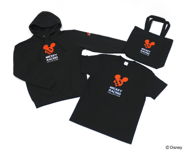 「Mickey Racing Collection」のアパレルシリーズとして、パーカー、Tシャツ、トートバックがラインナップ。
