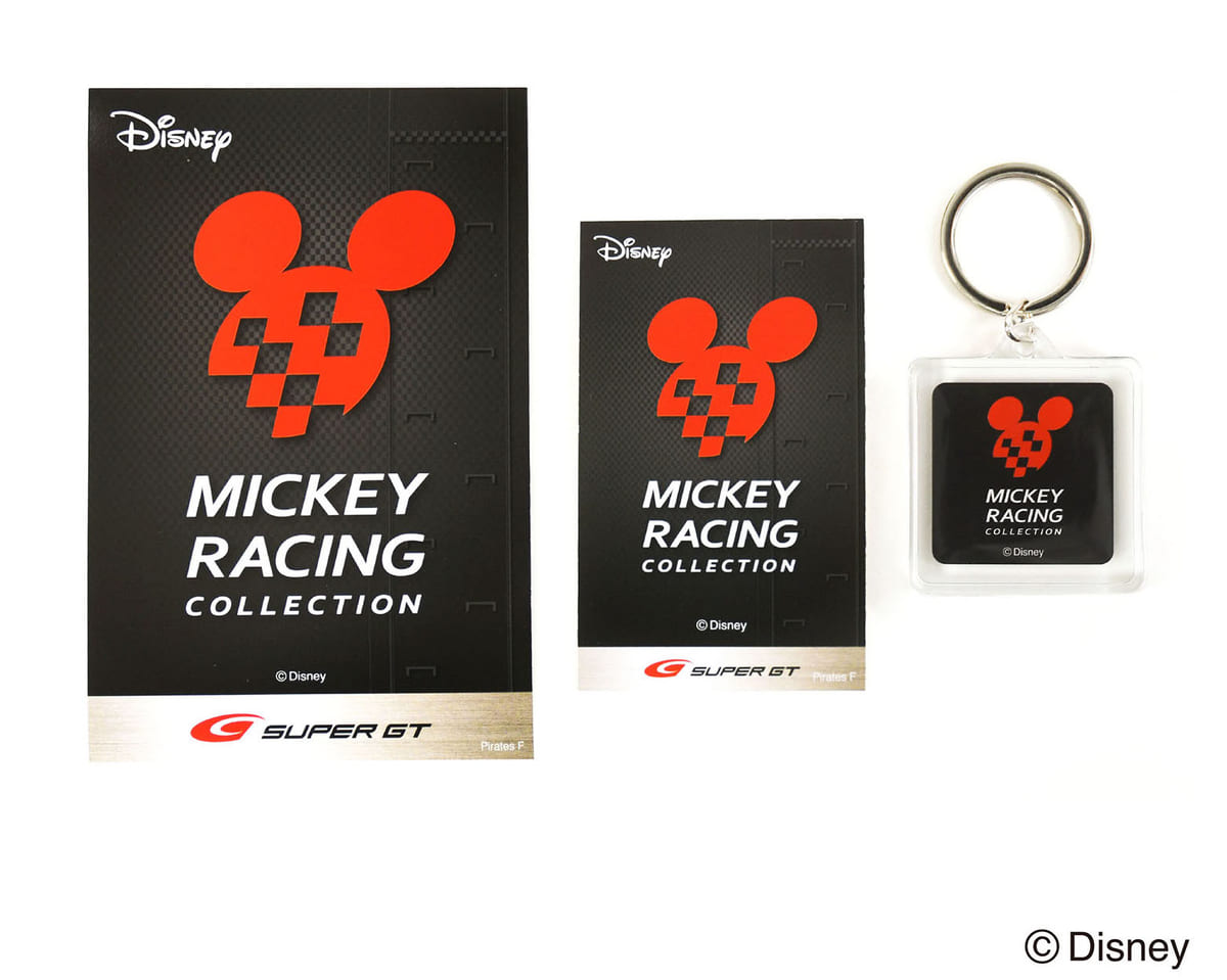 「Mickey Racing Collection」のステッカー、クリアキーホルダー。