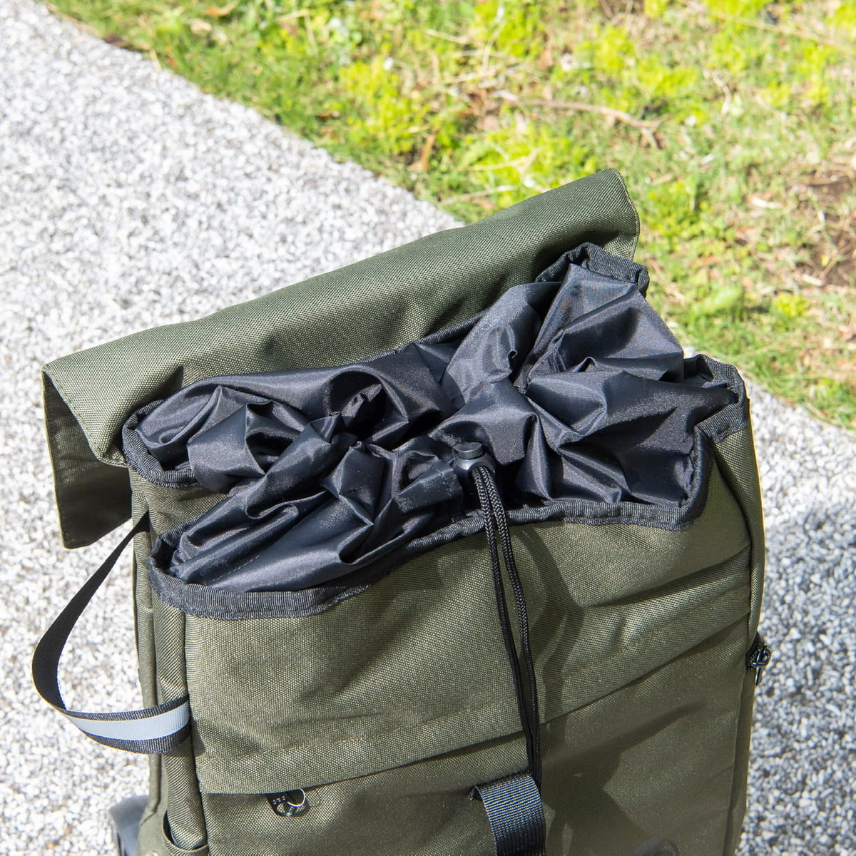 サイドにはペットボトルやドリンクボトルを入れておけるポケットつき。