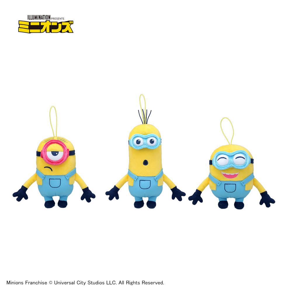 カラフルなゴーグルがアクセントになった「ボブ」「ケビン」「スチュアート」のマスコット。