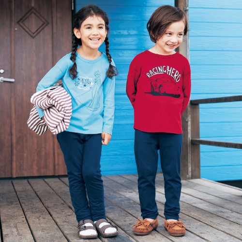 ベルメゾン ディズニー「自分でお着替えしやすいTシャツ&ボトムセット」