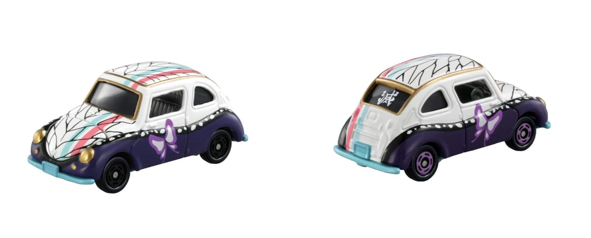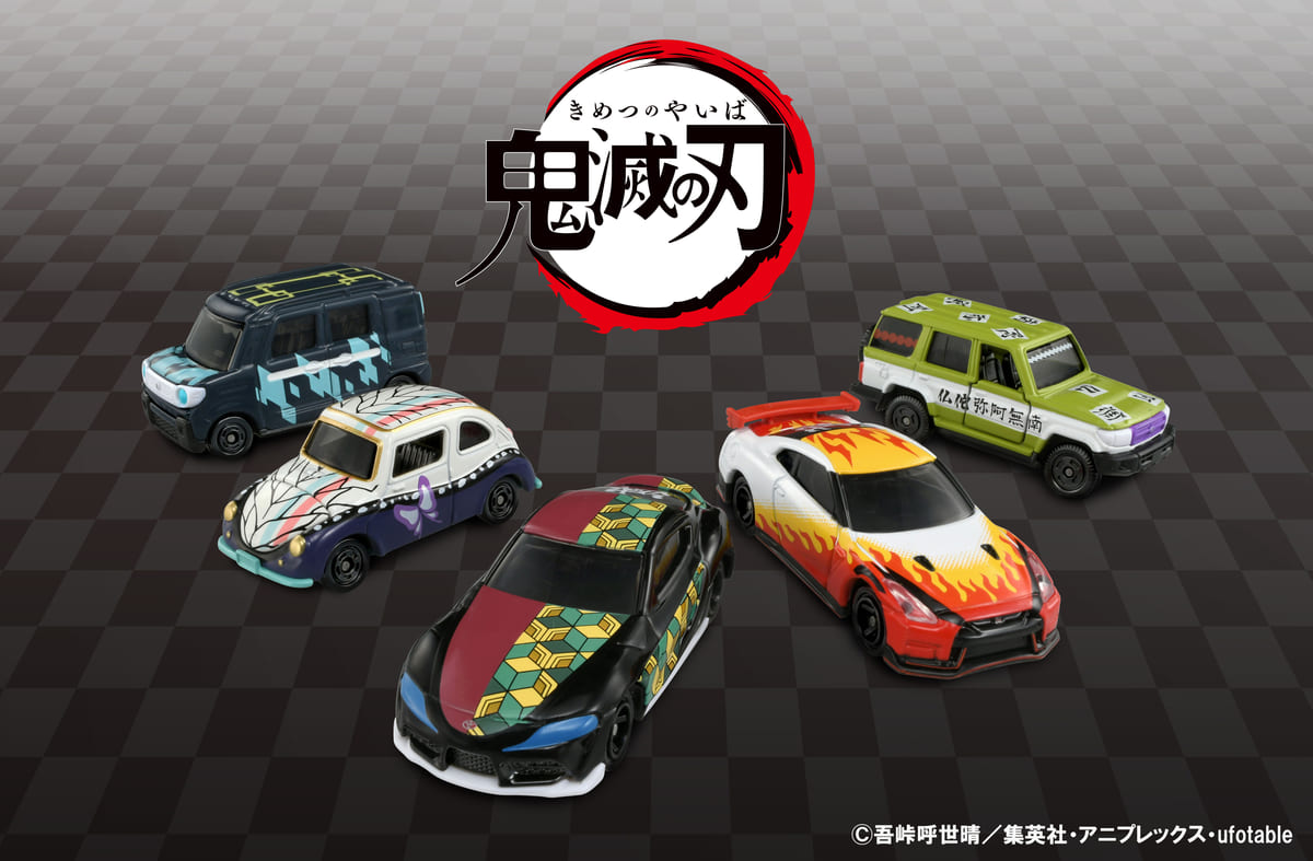 キャラクターの特徴を活かした車両のセレクトや、羽織の柄や日輪刀をイメージしたデザイン、リアには鬼殺隊の隊服と同じく「滅」の文字を刻むなど、「トミカ」を通じてアニメの世界観を表現しています。