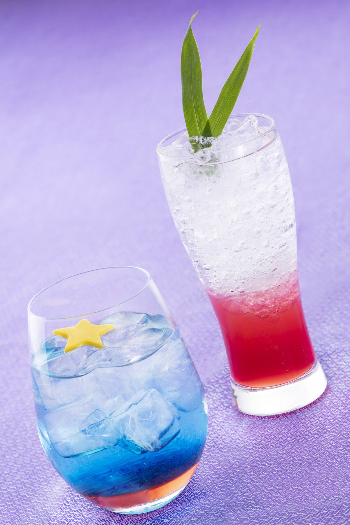 写真右の「七夕おりひめドリンク」はおりひめを表現したドリンク。