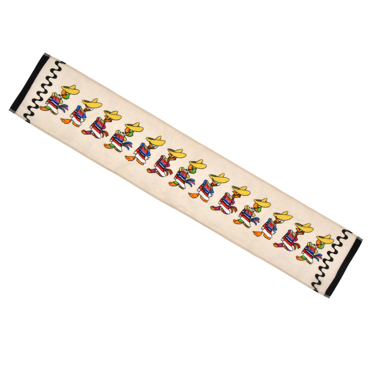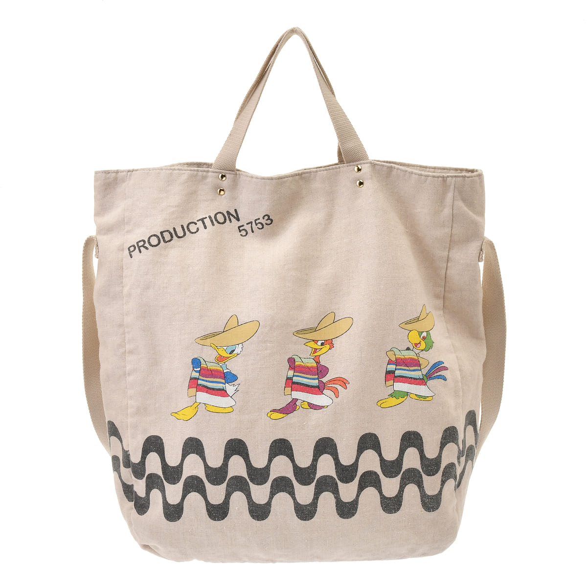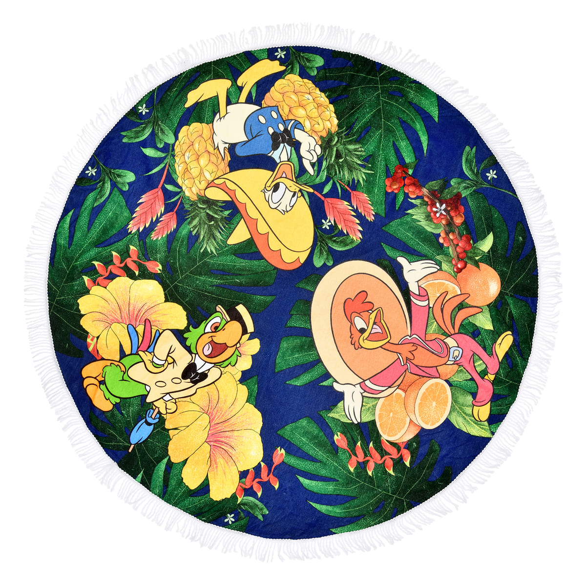 お馴染みの「ドナルドダック」や、ブラジル生まれのオウム「ホセ・キャリオカ」、雄鶏「パンチート」たちの、ラテン・アメリカ風のにぎやかで陽気な総柄プリントが魅力的です。
