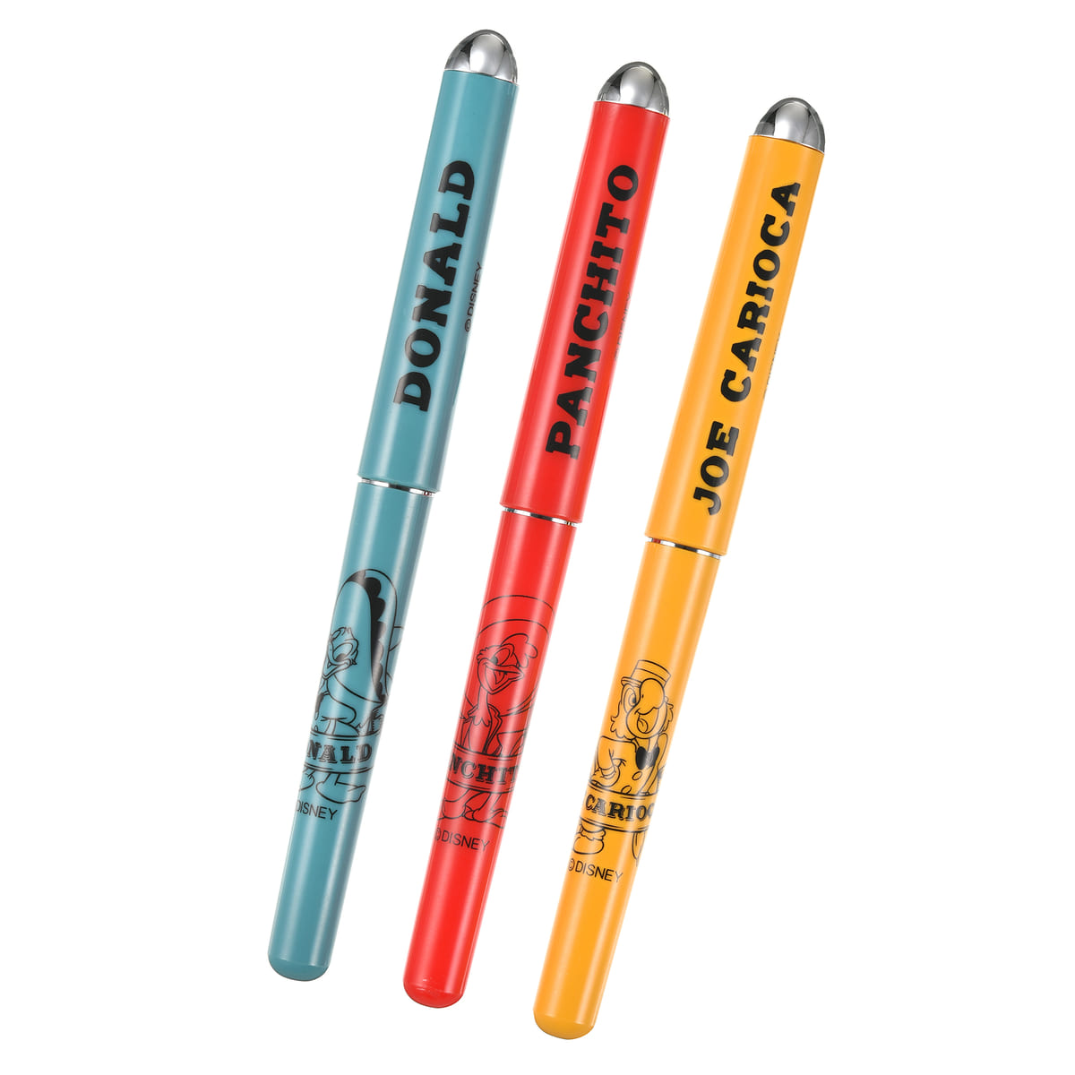 「ドナルドダック」「ホセ・キャリオカ」「パンチート」がそれぞれプリントされたボールペンセット。