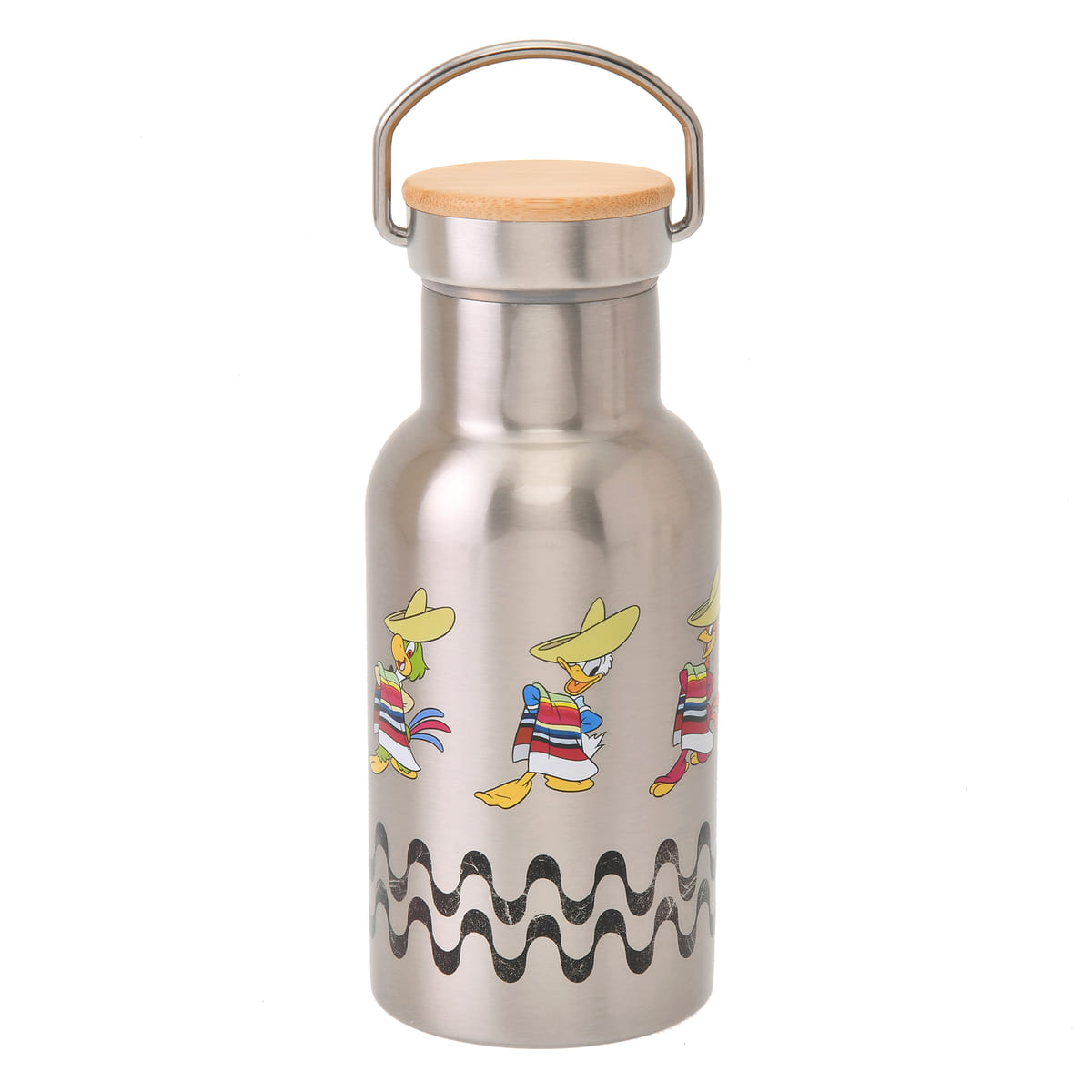 銀色のボトルにラテン・アメリカ風のアートが映える、レトロでオシャレなステンレスボトル。