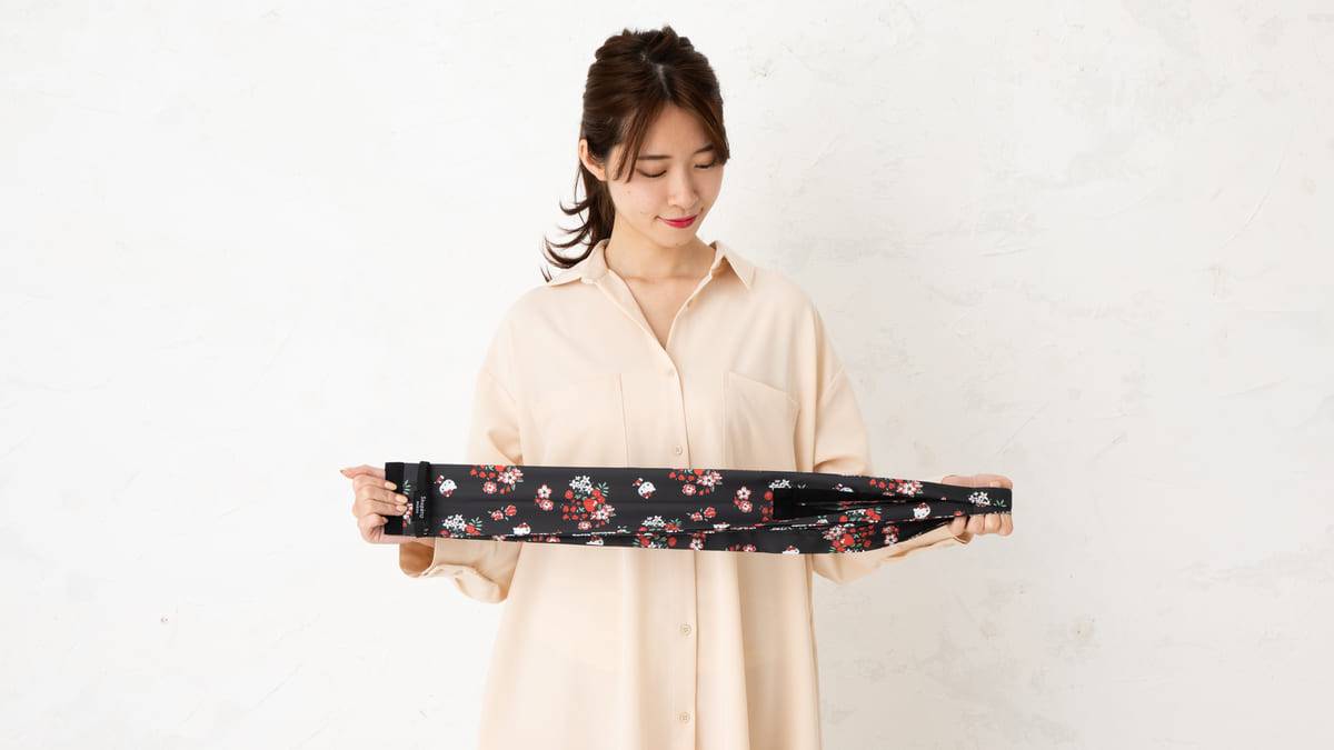 たたむと約4㎝のフラット形状になって、カバンの中でもかさばらない大きさです。